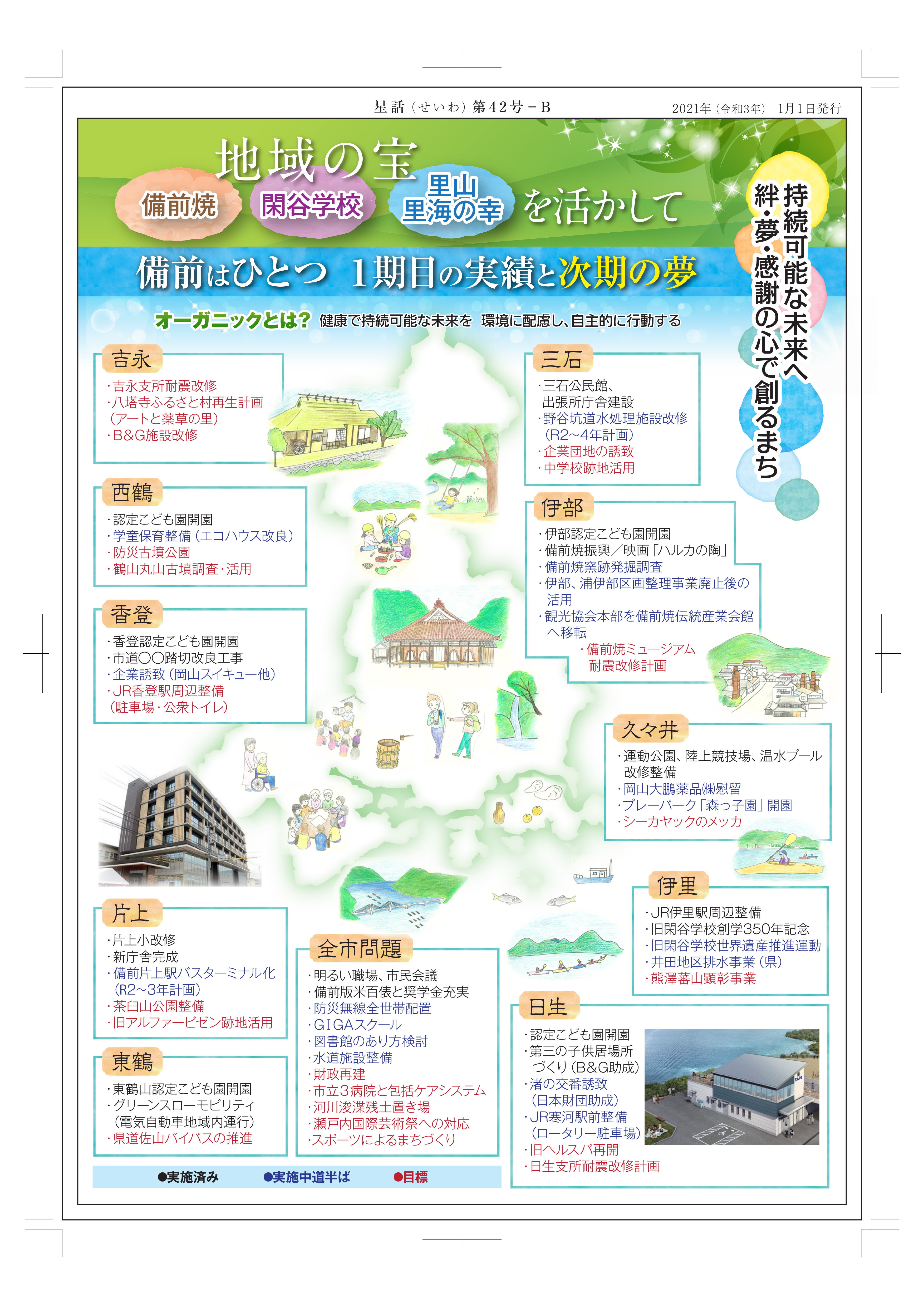 また、備前市では、合併して15年間をふり返り、今後の在るべき姿を描いて、来年から始まる次期総合計画の策定作業が始まっています。