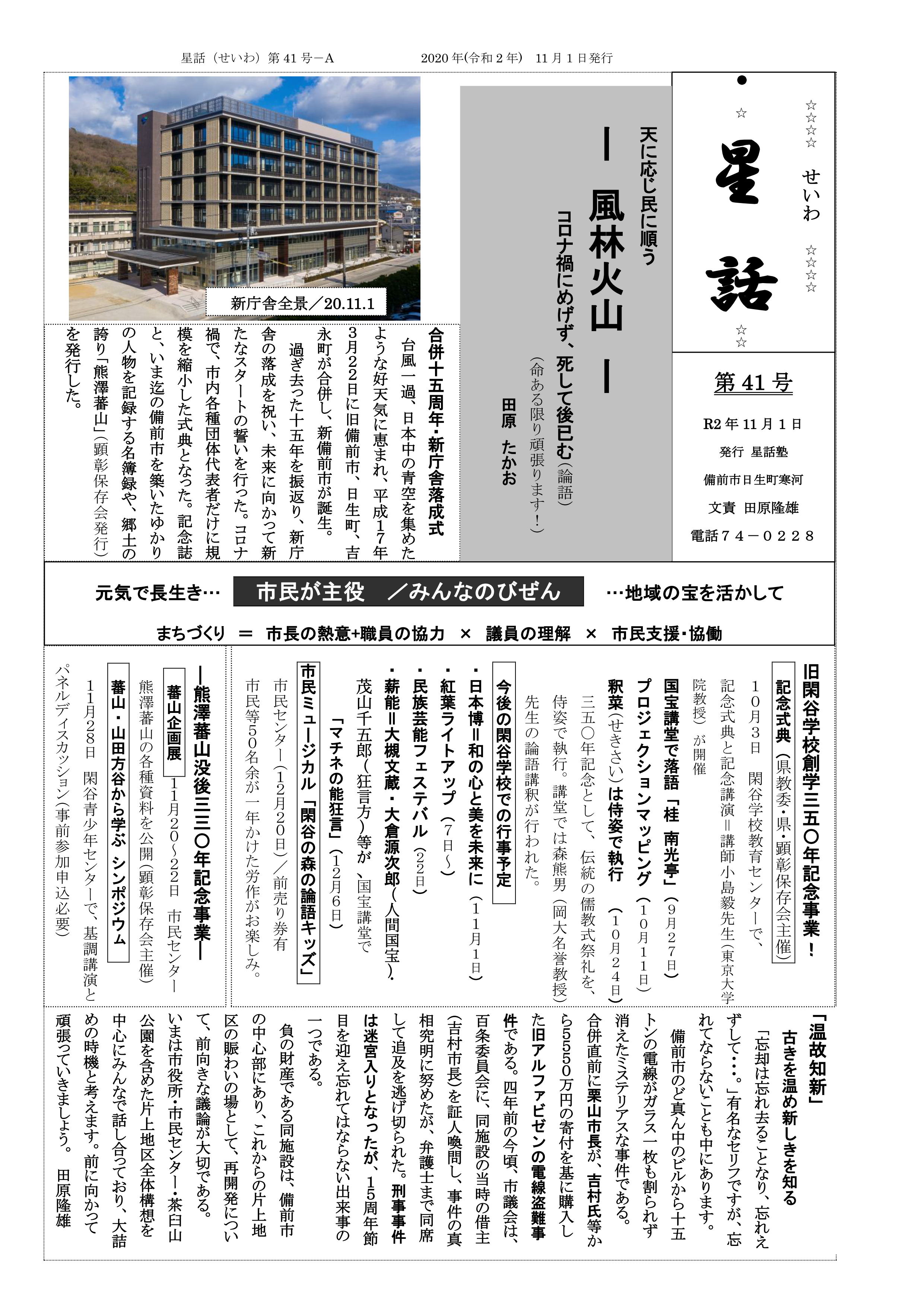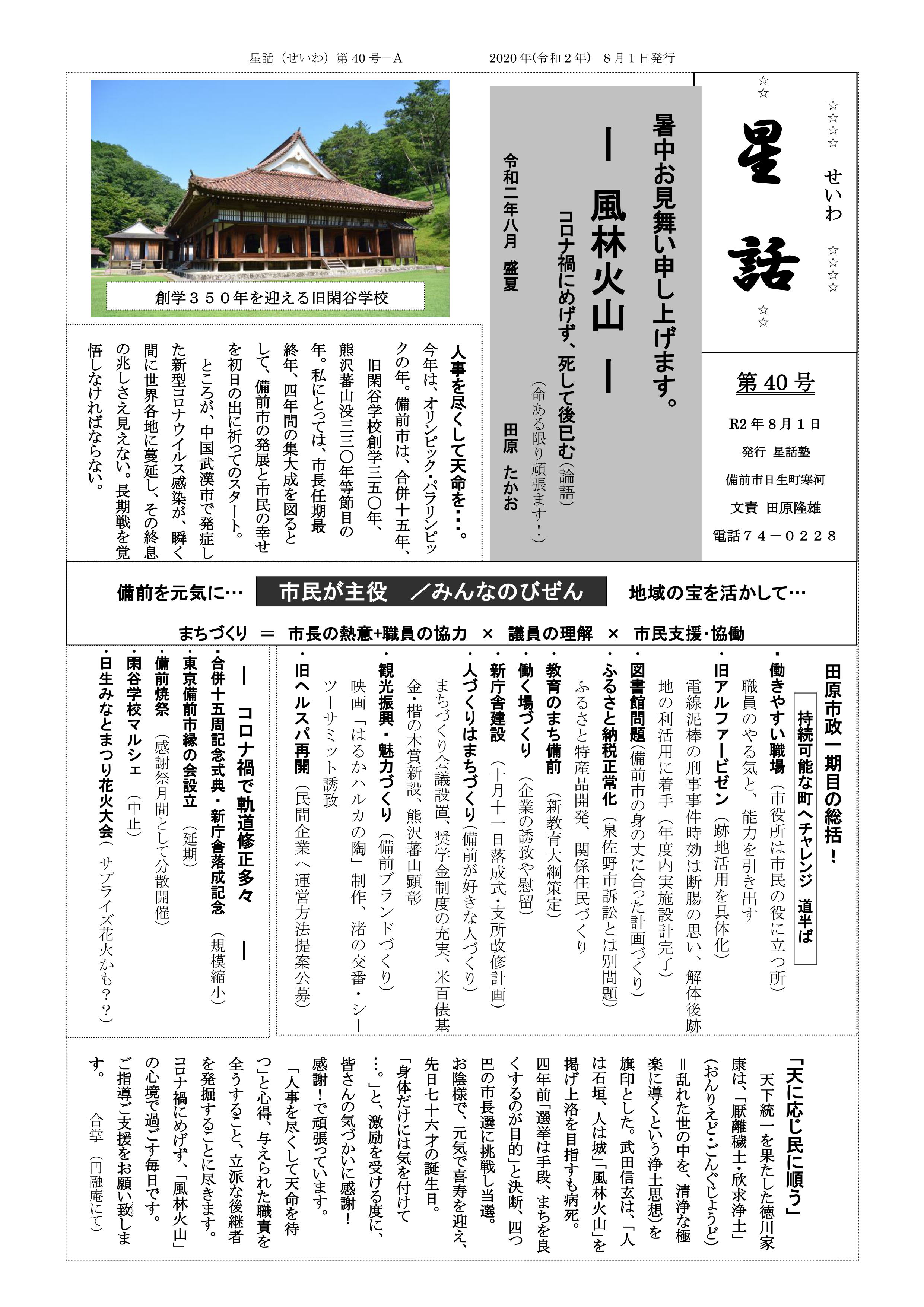 星話40号のタイトル「風林火山」武田信玄公の旗印に、意のあるところご理解願えれば幸いです。